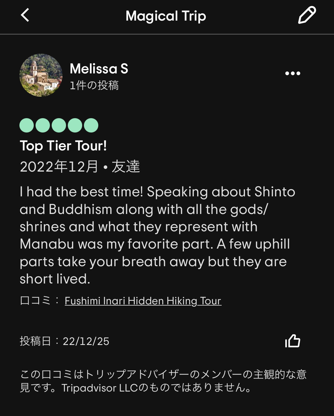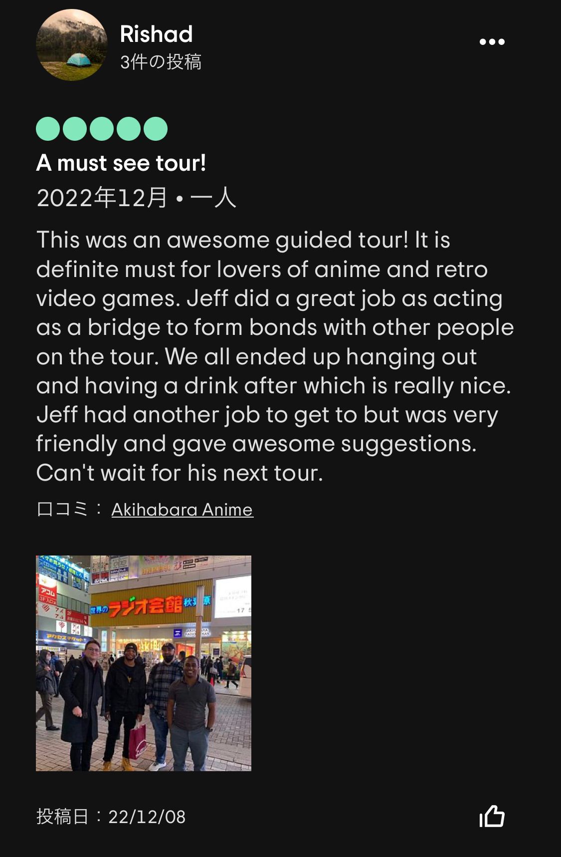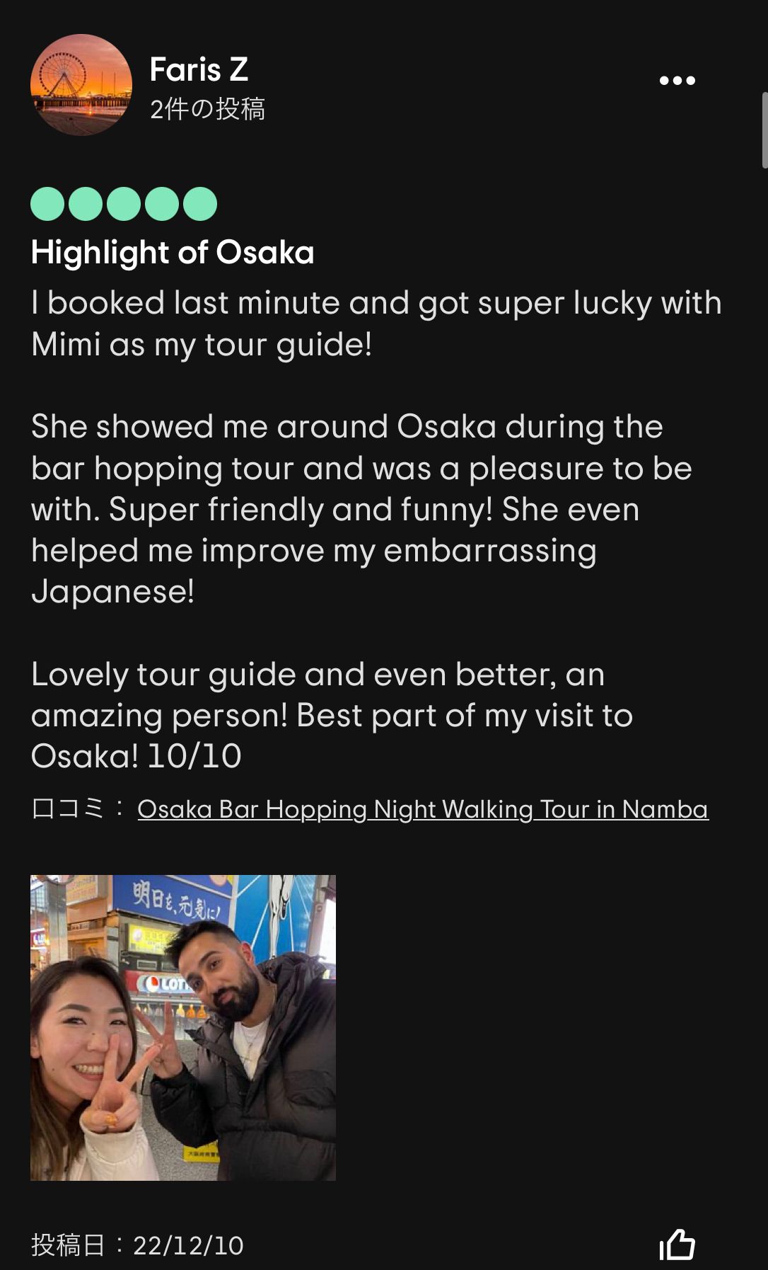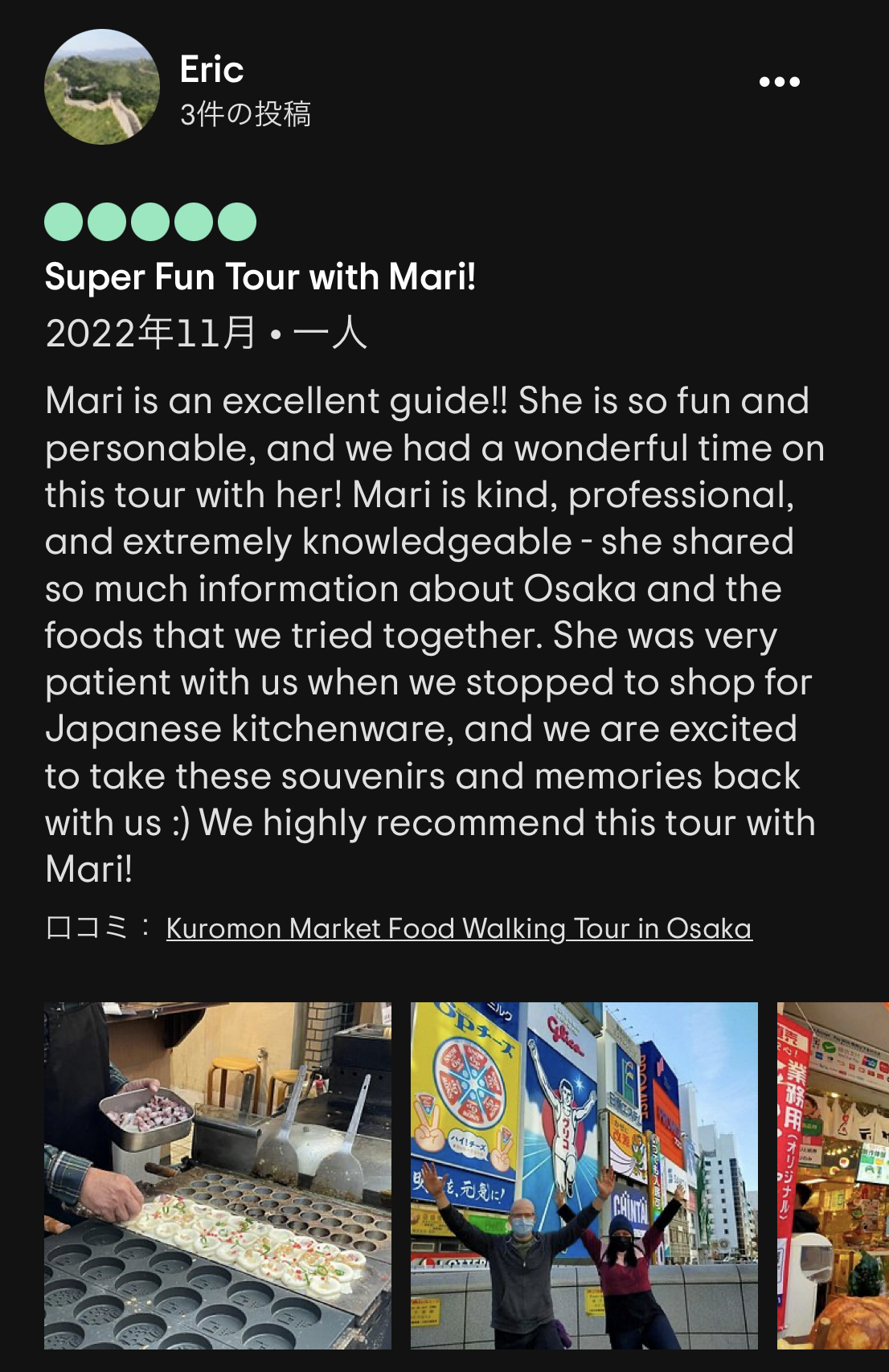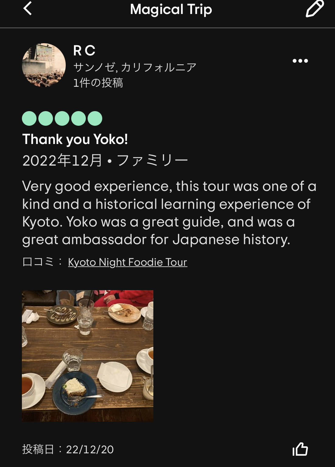 個人的には、Yoichiさんが渋谷のBar hopping tourを数年ぶりにガイドした際に、ゲストに隠れてひっそりと「これだよー」とマジトリツアーの再開に涙を流したストーリーが特に印象的でした😢有難うございます。