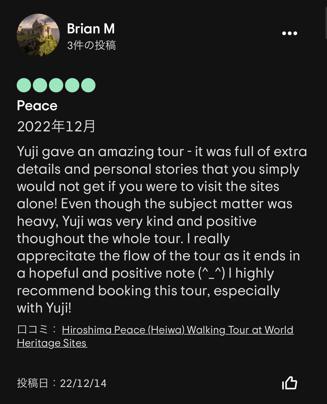 そしてラストは広島ガイドのYujiさん🎉