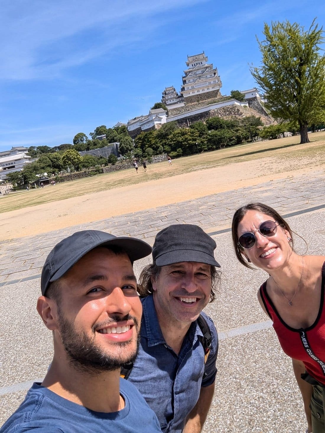 そびえ立つ姫路城を背景にした、迫力満点のアングル!斜めワールド<( ̄- ̄)>これぞ現代の自撮り。